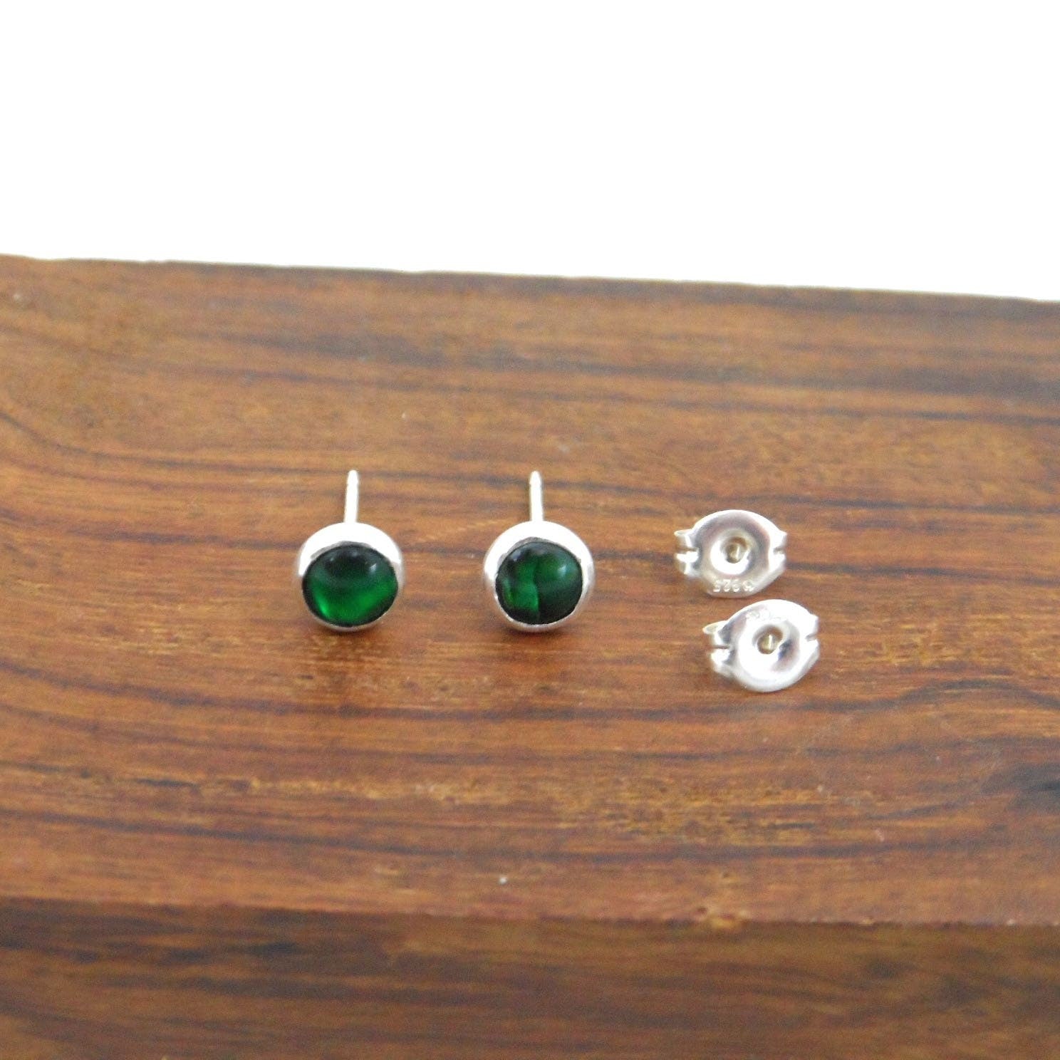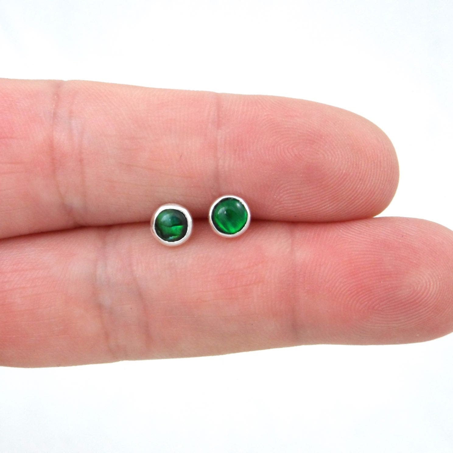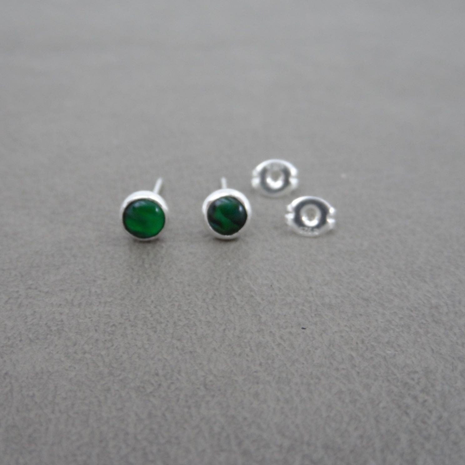 Green Paua Shell Sterling Silver Earrings-5mm
