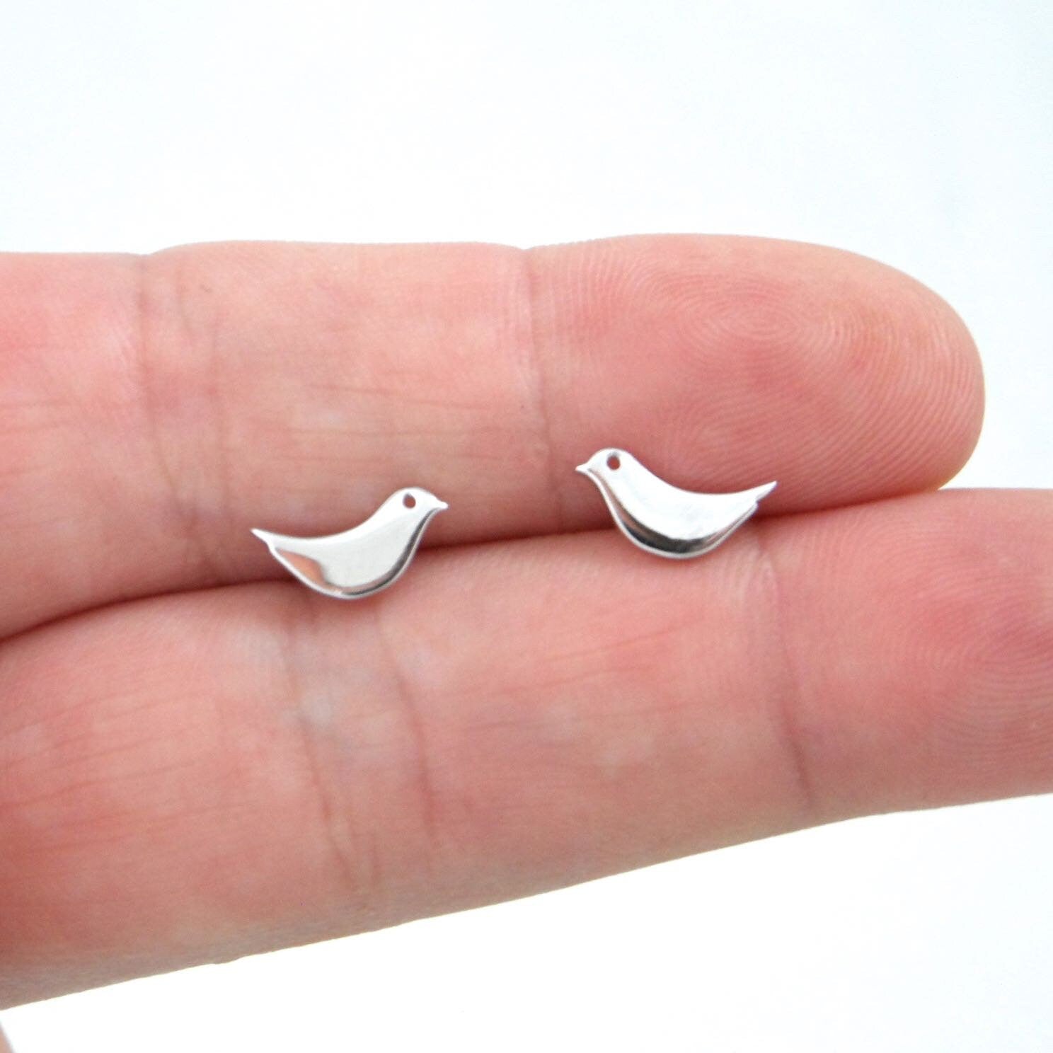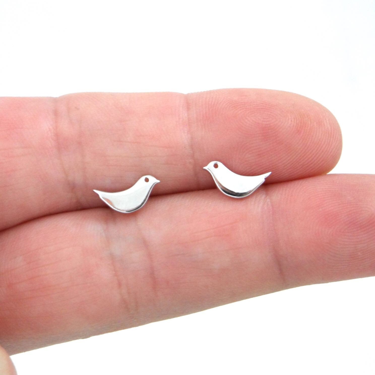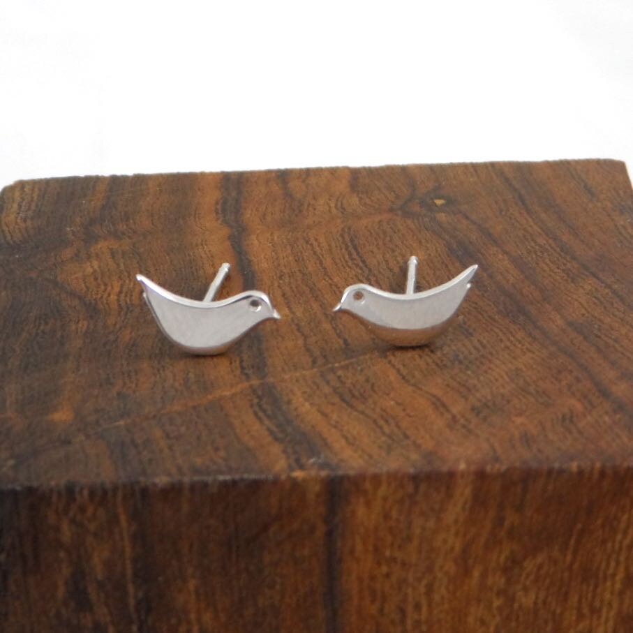 A darling pair of sterling silver bird stud earrings.
